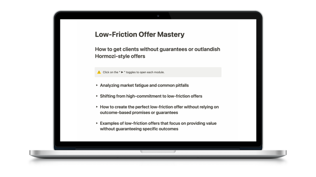 Now we’ve put this into a simple step-by-step guide called Low-Friction Offer Mastery.